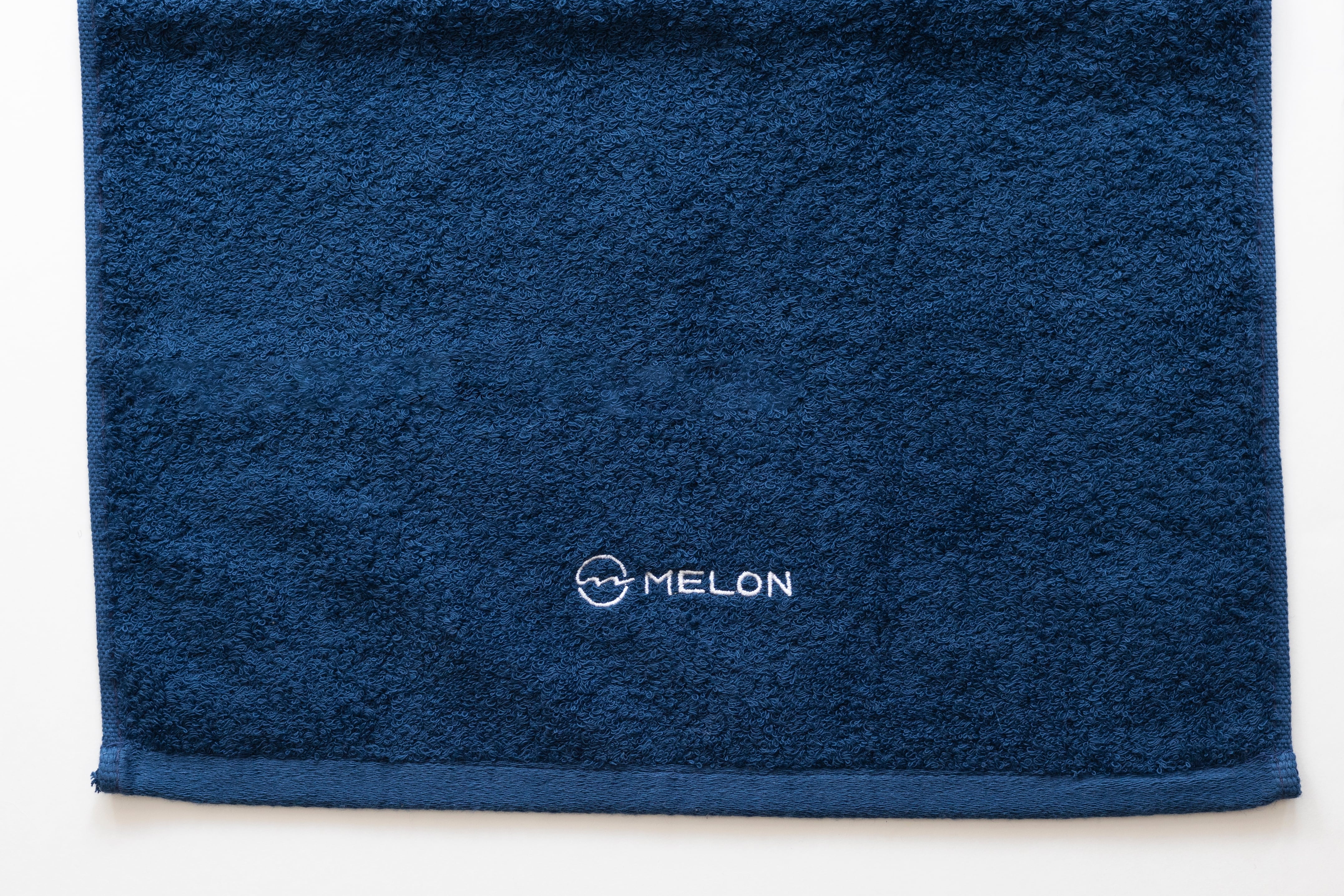 落ち着いた色味でMELONロゴも主張しすぎないので、どんなシーンでも使いやすいタオルとなっております。